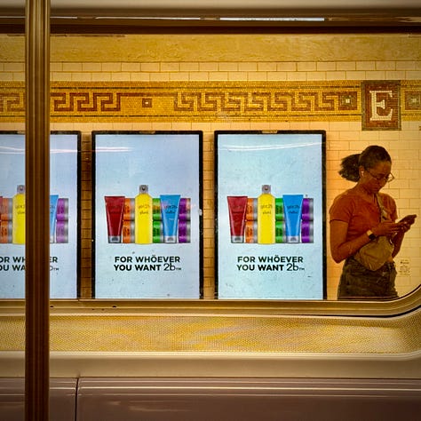 (5) Ad for a hair product as seen on Delancey while in the J train.